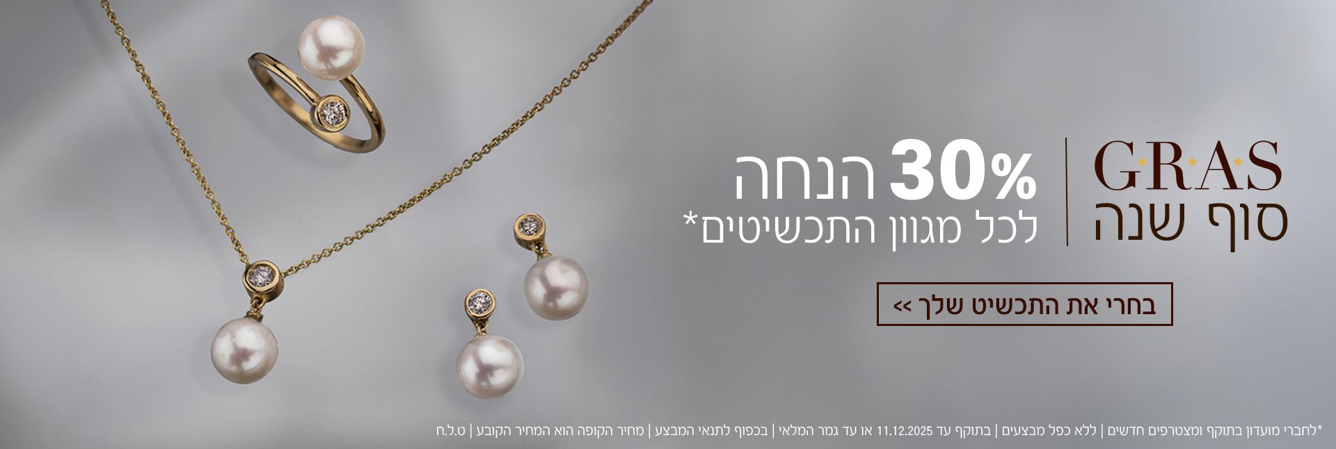 תכשיטי זהב 14 קראט בשיבוץ פנינים