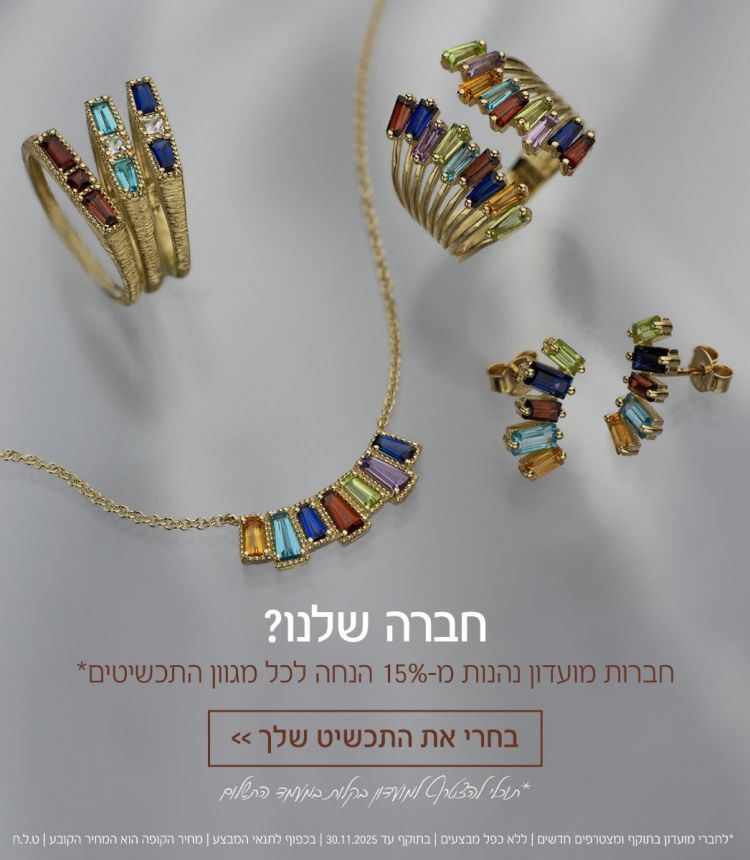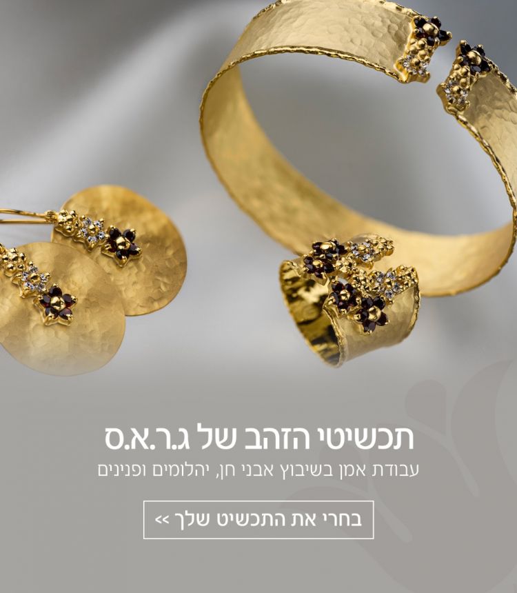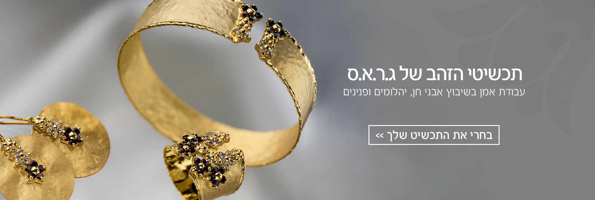 תכשיטי זהב 14 קראט בשיבוץ אבני גרנט טבעיות